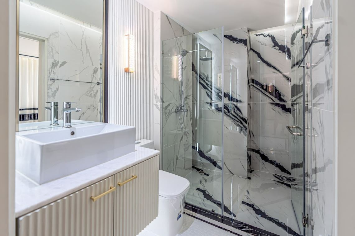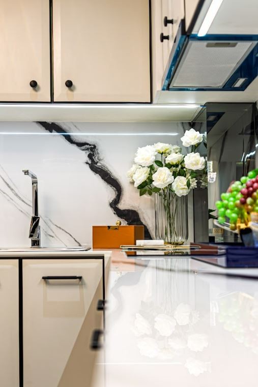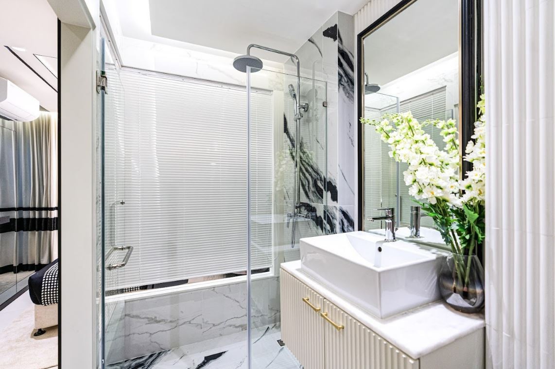 Elegant interiors combine classic lines with modern detailing: marble-effect surfaces, refined cabinetry, soft textiles, and warm lighting create a balanced, upscale feel. High-quality finishing materials stand out - premium tiles, eco-friendly surfaces, and carefully selected textures throughout.